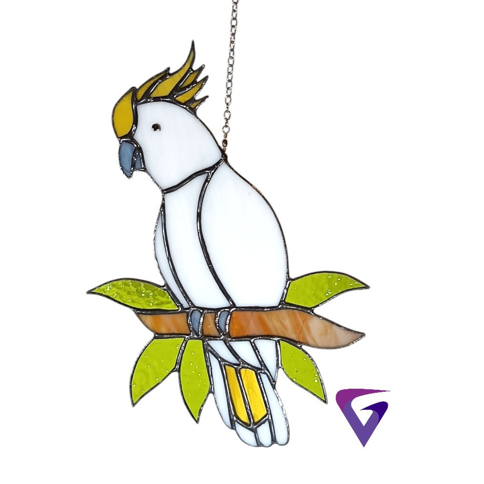 Sulphur Crested Cockatoo stained glass / leadlight suncatcher